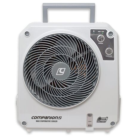 Αυτή είναι η ενισχυμένη έκδοση του mini κλιματιστικού της Companion. Η ταχύτητα ροής αέρα των 250 m3/h του Maxi και η χωρητικότητα της δεξαμενής νερού των 1,2 λίτρων σημαίνει ότι μπορείτε να καταπολεμήσετε τα αποπνικτικά σημεία της ημέρας κάτω από τον Ελληνικό ήλιο. Χάρη στην μπαταρία λιθίου μπορείτε να το τοποθετήσετε όπου θέλετε, στη παραλία, στη ξαπλώστρα, στη σκηνή, απολαμβάνοντας δροσερά ρεύματα αέρα όταν οι άλλοι ταλαιπωρούνται από την ζέστη.