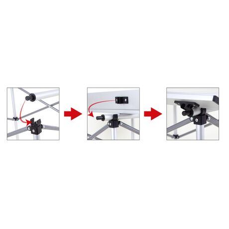 Το τραπέζι ρολό της ESCAPE είναι κατασκευασμένο από αλουμίνιο για μειωμένο βάρος, κρατώντας υψηλά την αντοχή στη σκουριά. Τα πλαστικά μέρη είναι από PP, ένα θερμοπλαστικό πολυμερές γνωστό για την υψηλή αντοχή που προσφέρει. Η συναρμολόγηση του είναι πολύ απλή, απλά ξεδιπλώστε τον σκελετό και τοποθετήστε πάνω το ρολό στερεώνοντας το και ασφαλίζοντάς το. Είστε έτοιμοι!