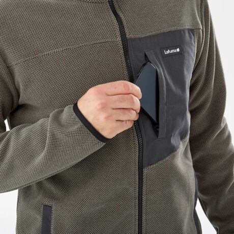 Ντυθείτε άνετα κατά τις πεζοπορικές σας εκδρομές με το μοντέρνο TECHFLEECE F-ZIP της Lafuma. Αυτό το ανδρικό fleece διαθέτει εφαρμοστό σχήμα που χωράει άνετα κάτω από το αδιάβροχο μπουφάν σας. Ο ψηλός γιακάς και τα ελαστικά φινιρίσματα στις μανσέτες βελτιστοποιούν την παροχή ζεστασιάς, ενώ το πλήρες κλείσιμο με φερμουάρ σάς επιτρέπει να απελευθερώνετε εύκολα την υπερβολική θερμότητα όταν το επιθυμείτε. Ευχάριστο όταν φοριέται χάρη στο βουρτσισμένο fleece εσωτερικά, αυτό το ανδρικό fleece απόδοσης απομακρύνει γρήγορα την υγρασία για να σας κρατήσει στεγνούς παρά την έντονη προσπάθεια στα δύσκολα μονοπάτια. Τελευταίο, αλλά εξίσου σημαντικό, μια τσέπη με φερμουάρ στο στήθος και δύο τσέπες για τα χέρια συμπληρώνουν αυτό το όμορφο fleece πεζοπορίας.