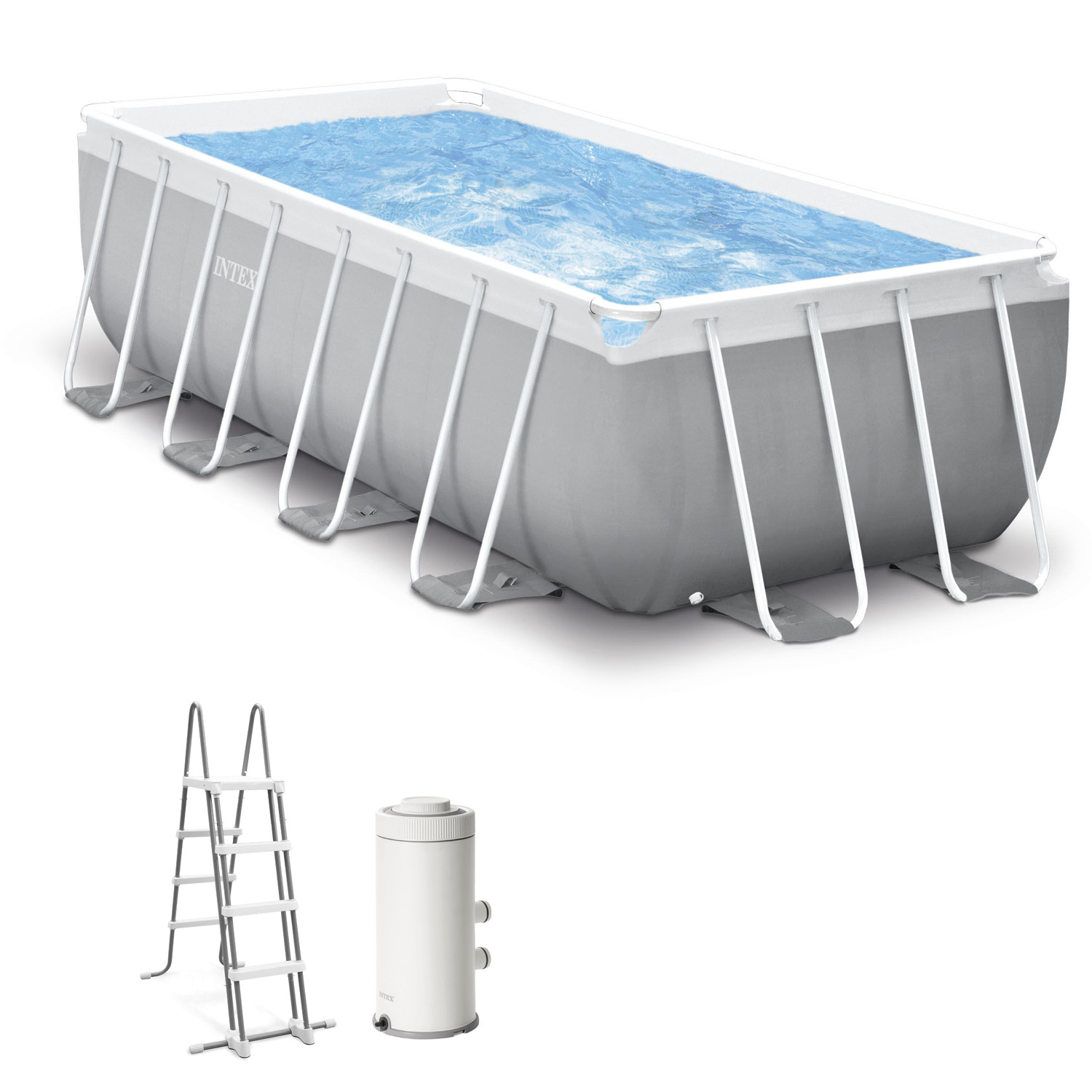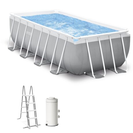 Prism Set POOL SET Παραλληλόγραμμη Πισίνα PVC με Μεταλλικό Σκελετό, Αντλία Φίλτρου, Σκάλα, 400x200x122 cm, EL-26790