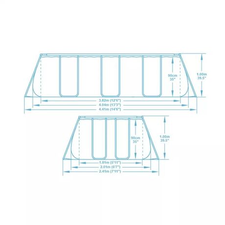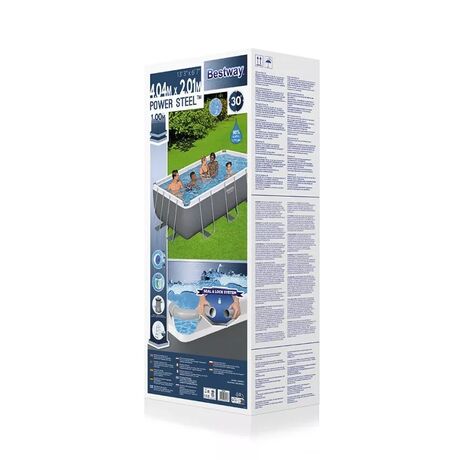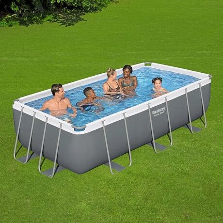 Η ορθογώνια πισίνα Bestway 56441 Power Steel™ είναι κατασκευασμένη από υλικά που εγγυόνται μια στιβαρή και ανθεκτική πισίνα η οποία θα σας προσφέρει χαλάρωση για πολλά χρόνια. Το κύριο υλικό που χρησιμοποιείται είναι ένα πολύ σκληρό PVC τριών στρώσεων, που αποτελείται από δύο στρώσεις βινυλίου και ένα στρώμα πολυπροπυλενίου. Επιπλέον, ολόκληρη η κατασκευή υποστηρίζεται από ένα μεγάλο, ανθεκτικό στη σκουριά, μεταλλικό πλαίσιο σωλήνων. Η πισίνα Bestway 56441 είναι η ιδανική ορθογώνια πισίνα κήπου για το καλοκαίρι, η οποία συνοδεύεται από την αντλία φίλτρου Flowclear™ 58383 και τον πλωτό διανομέα ChemConnect. Αυτή η πισίνα προσφέρει μεγάλο χώρο για κολύμπι και παιχνίδι, χάρη στο ορθογώνιο σχήμα και το μεγάλο της μέγεθος. Έχει χωρητικότητα 6.478 λίτρων νερού (90% γεμάτη), ενώ η συναρμολόγηση και η αποσυναρμολόγηση της είναι πολύ απλή και γρήγορη, χάρη στο Seal&Lock σύστημα ™, καθώς επίσης και λόγω της βαλβίδας αποστράγγισης που περιλαμβάνεται.