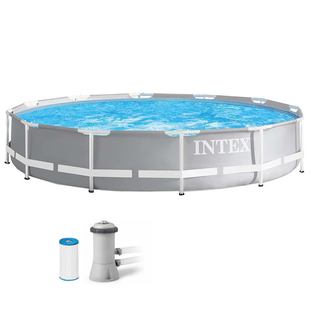 Prism Frame POOL SET INTEX Στρογγυλή Πισίνα PVC με Μεταλλικό Σκελετό, Αντλία Φίλτρου, Φ3.66 x 0.76 m, 26712