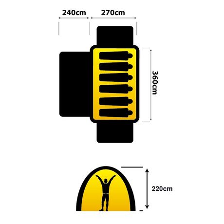 Dimensions: Tent floor area: 270 x 360 cm Tent head height: 220 cm