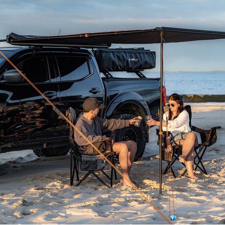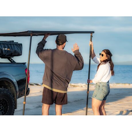 Η τέντα αυτοκινήτου BlockOut 2m x 2,5m της Oztrail είναι μια γρήγορη λύση έαν έχετε ένα μικρό όχημα και θέλετε μια καλή σκίαση δίπλα από αυτό. Κατασκευασμένο από βαρέως τύπου καμβά Ripstop 280 gsm, αδιαβροχοποίηση, και τεχνολογία BlockOut της OZtrail, μπλοκάρει έως και 95% την ηλιακή ακτινοβολία και μειώνει την θερμοκρασία κάτω από την τέντα έως και -10 °C, διατηρώντας σας δροσερό στη πολύ ζέστη και στεγνό σε μια βροχερή ημέρα.